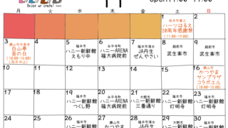 2025年11月の出店カレンダーです営業時間は11:00〜19:00です(閉店時間はご注文状況により延長する場合もあります)その他の詳細早めに完売する場合などはInstagramでお知らせしています! 皆様のお越しをお待ちしています!いつも...